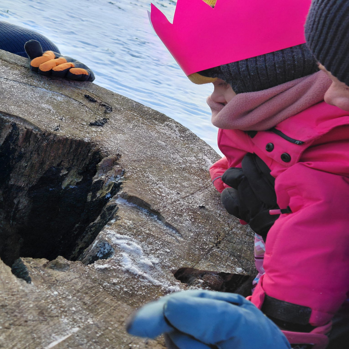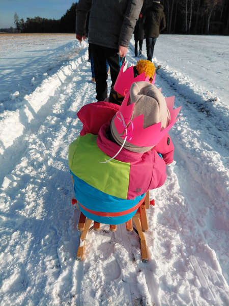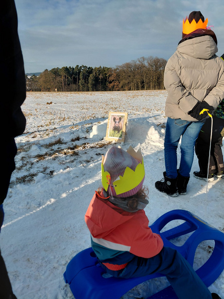 Die Interaktive Wanderung begann mit einer spannenden Geschichte für die die Kinder mit Kronen ausgestattet wurden. Denn die heiligen drei Könige hatten ihre Gaben auf ihrer anstrengenden Reise verloren und nun machten sich die Kinder mit Hilfe der Tiere des Waldes auf den Weg sie wieder zu finden.
