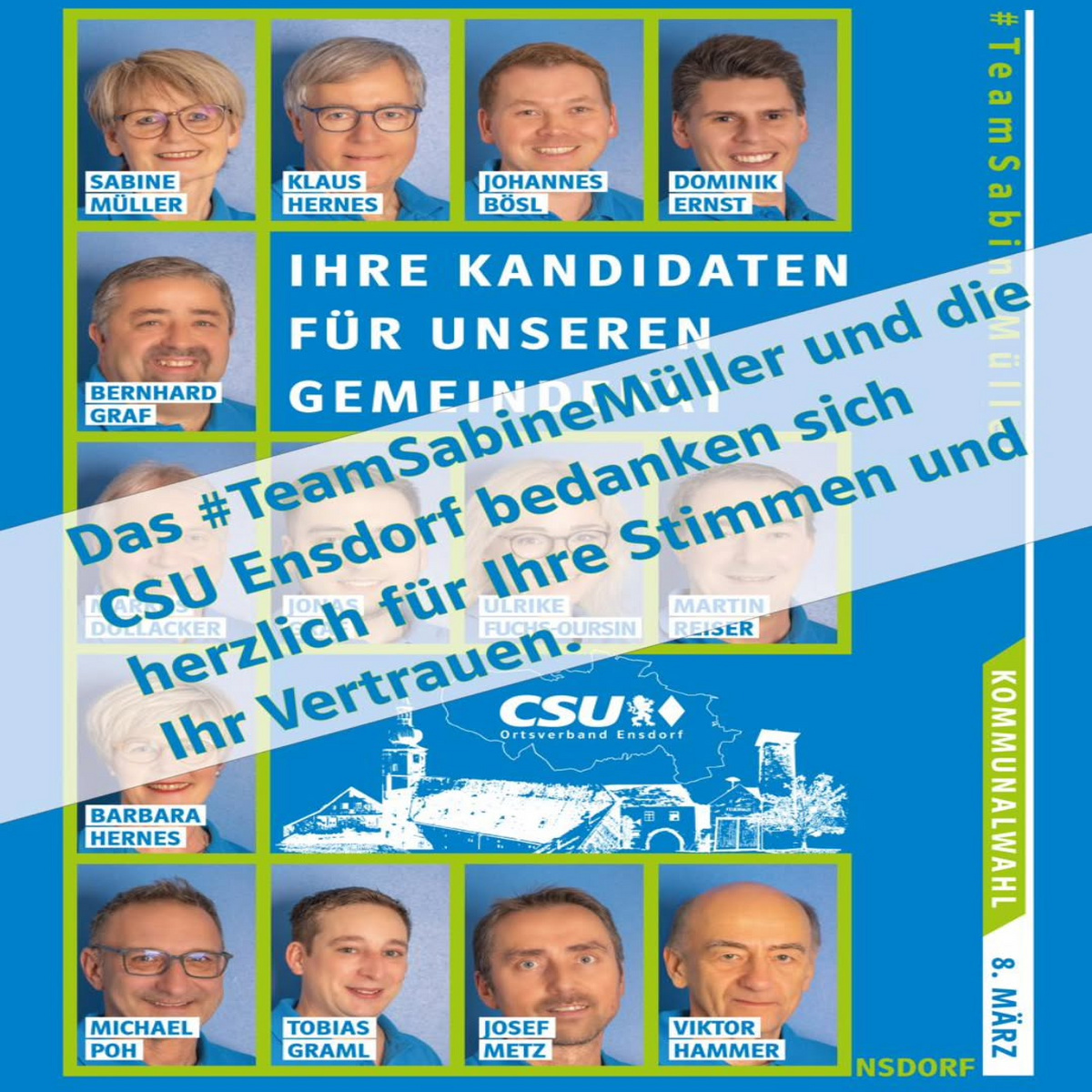 Das #TeamSabineMüller und die CSU Ensdorf bedanken sich herzlich für Ihre Stimme und Ihr Vertrauen.
