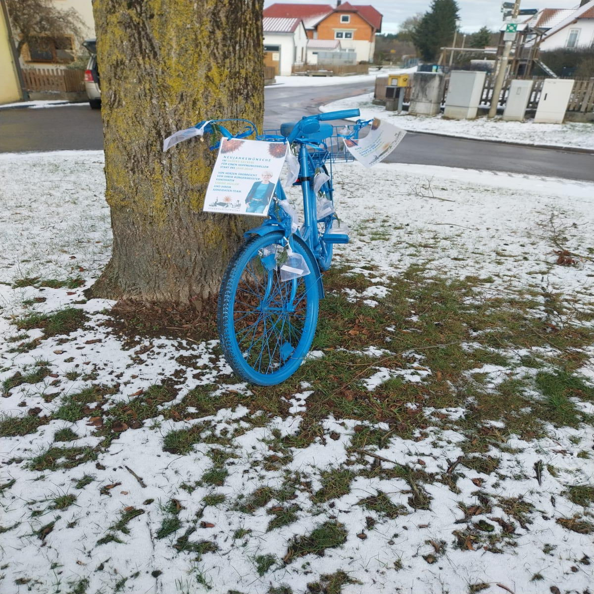 Dieses Mal war das blaue Fahrrad vom 30.12.2025 – 01.01.2026 auf seiner Gemeindetour unterwegs und hat seine Glückssackerl mit den Glücksanhängern in den Ortschaften Wolfsbach, Hofstetten, Hirschwald, Ensdorf, Seulohe, Uschlberg und Thanheim verteilt.